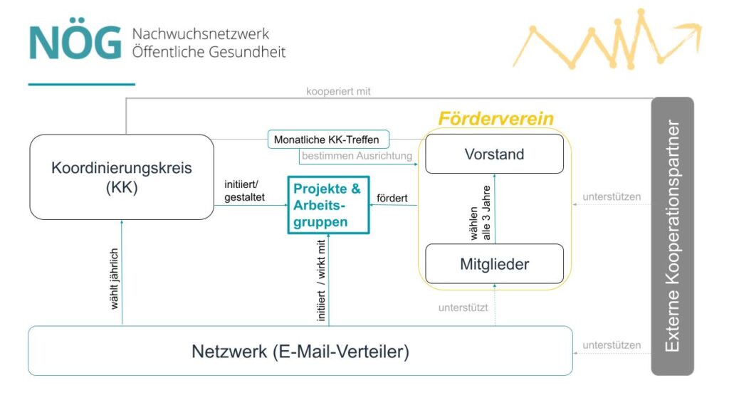 Die inhaltliche Ausrichtung des Vereins wird gemeinsam vom Vorstand und dem Koordinierungskreis gestaltet. Der Koordinierungskreis wird vom gesamten NÖG gewählt, der Vereinsvorstand von den Vereinsmitgliedern.